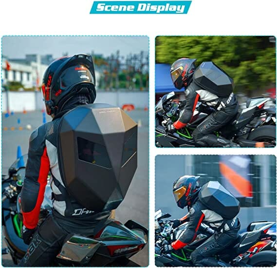 The LED backpack bag. Ideal for riders and backpackers that wants to be seen. Comes with different style of eye animation that includes DeadPool, Owl and many others