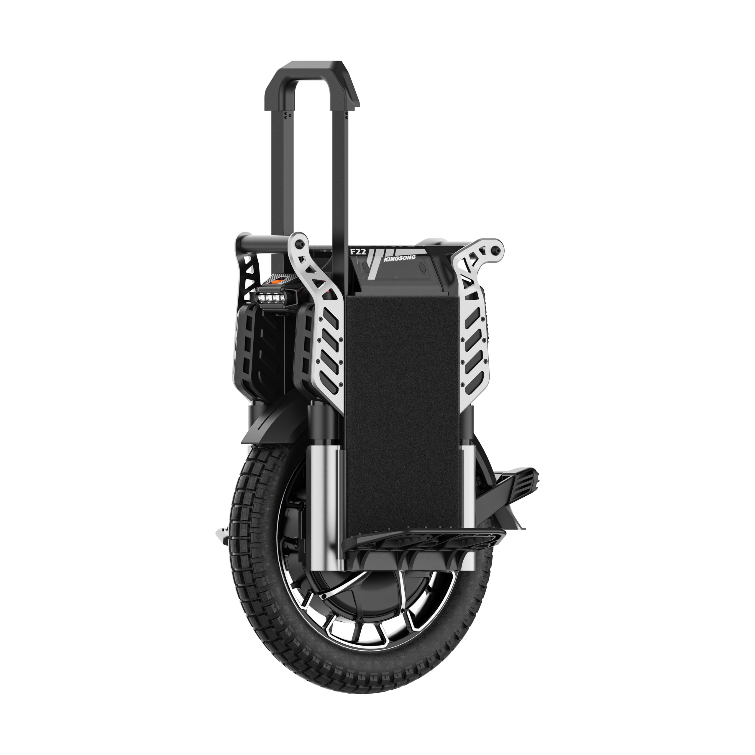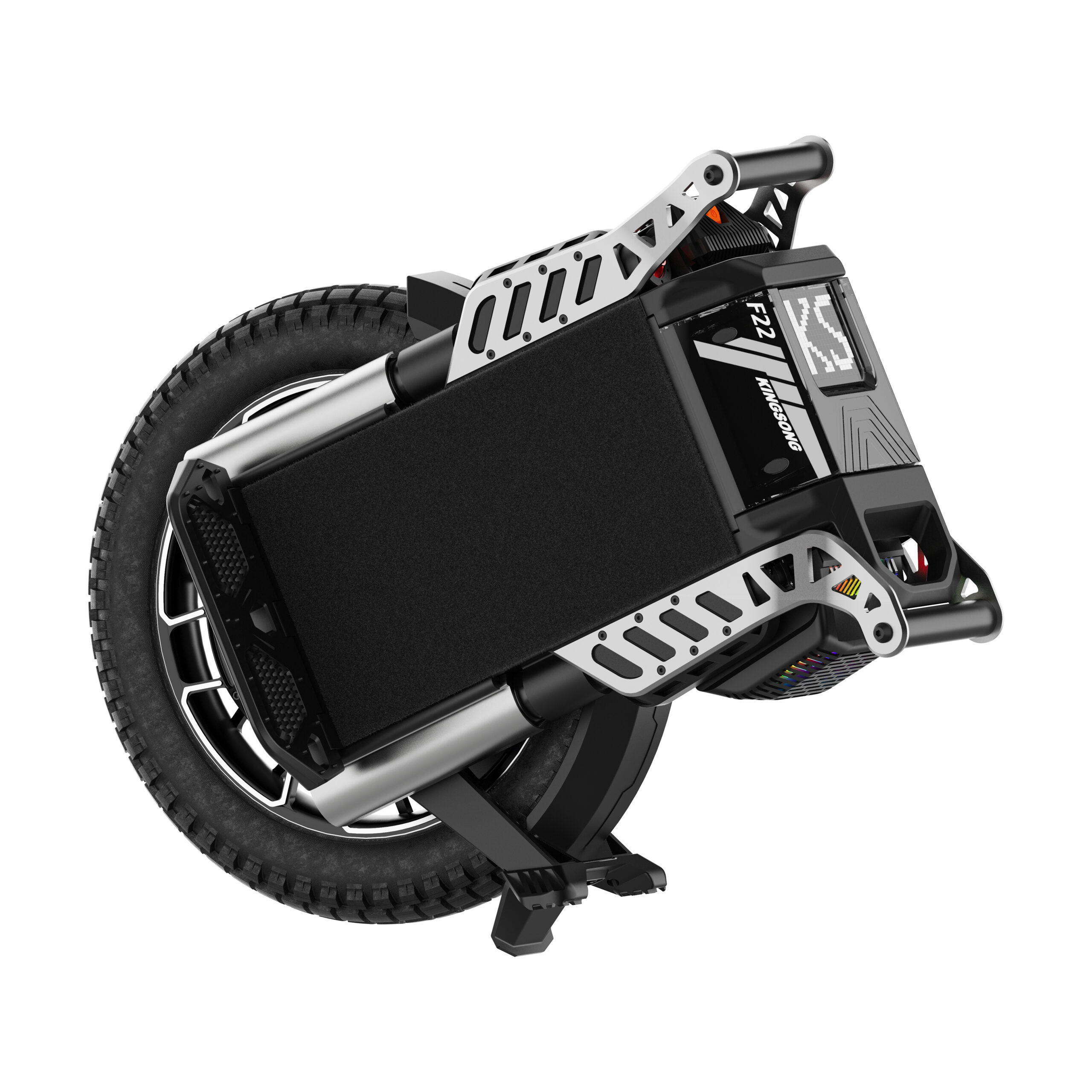 The KingSong F22 Pro is a high-voltage (176V) flagship electric unicycle engineered for ultimate off-road dominance and urban agility, with a 5500W motor (peaking at 12,000W) conquering 40° inclines and speeds up to 130 km/h. Its 3108Wh Samsung 50S battery delivers up to 180 km range, with 2-hour fast charging via dual 20A ports and advanced BMS for safety. Tackle any terrain with the world’s first four-shock DNM suspension (two hydraulic, two air) offering 100mm adjustable travel, paired with a rugged 14-inch off-road tire. At 48 kg with a 120 kg payload, it includes Apple Find My tracking, customizable RGB lights, 360° Bluetooth speakers, IP67 water resistance, and a modular magnesium alloy frame for effortless maintenance—ideal for extreme adventures or daily commutes.